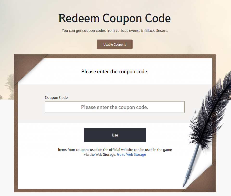 Enter your code via [Use Coupon] to receive your rewards via in-game mail.