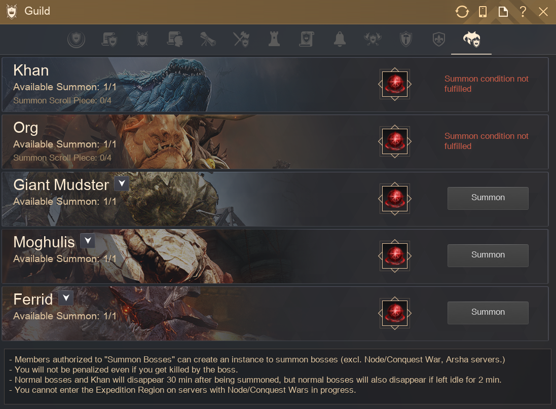- All 5 types of Guild Bosses can now be viewed on one screen.
