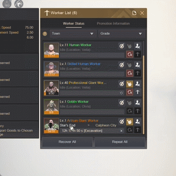 To make it easier for you to see your workers' progress, we have added a function that displays the destination via Work Progress Information in the World Map. This improvement provides more intuitive information, allowing you to check your workers' tasks and progress at a glance.- Improved the UI in the World Map (M) to show each working worker's destination.