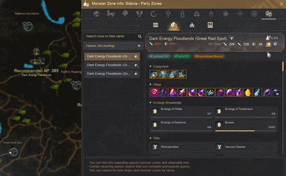 A monster zone's optimal AP is more accurate when viewed based on Total Stats rather than Displayed Stats. You can now check the optimal AP of monster zones in the World Map (M) based on Total Stats.- Improved the Monster Zone Info UI so that selecting "View Total Stats" will now display the optimal AP on the World Map (M) using your Total Stats AP.