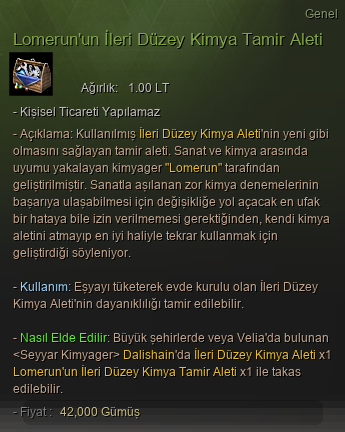 • Lomerun'un Üstün/İleri Düzey Kimya Tamir Aleti
