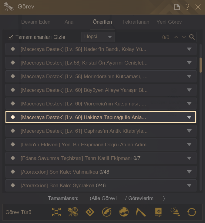 • "[Etkinlik] Hakinza Tapınağı ile Anlaşma" görevinin alınma konumu, Görev (O) - Önerilen görevler sekmesine taşındı ve görev adı "[Maceraya Destek] [Lv. 60] Hakinza Tapınağı ile Anlaşma" olarak değiştirildi.
