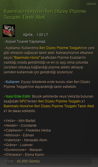• Aşağıdaki eşyaların adı ve açıklaması iyileştirildi.