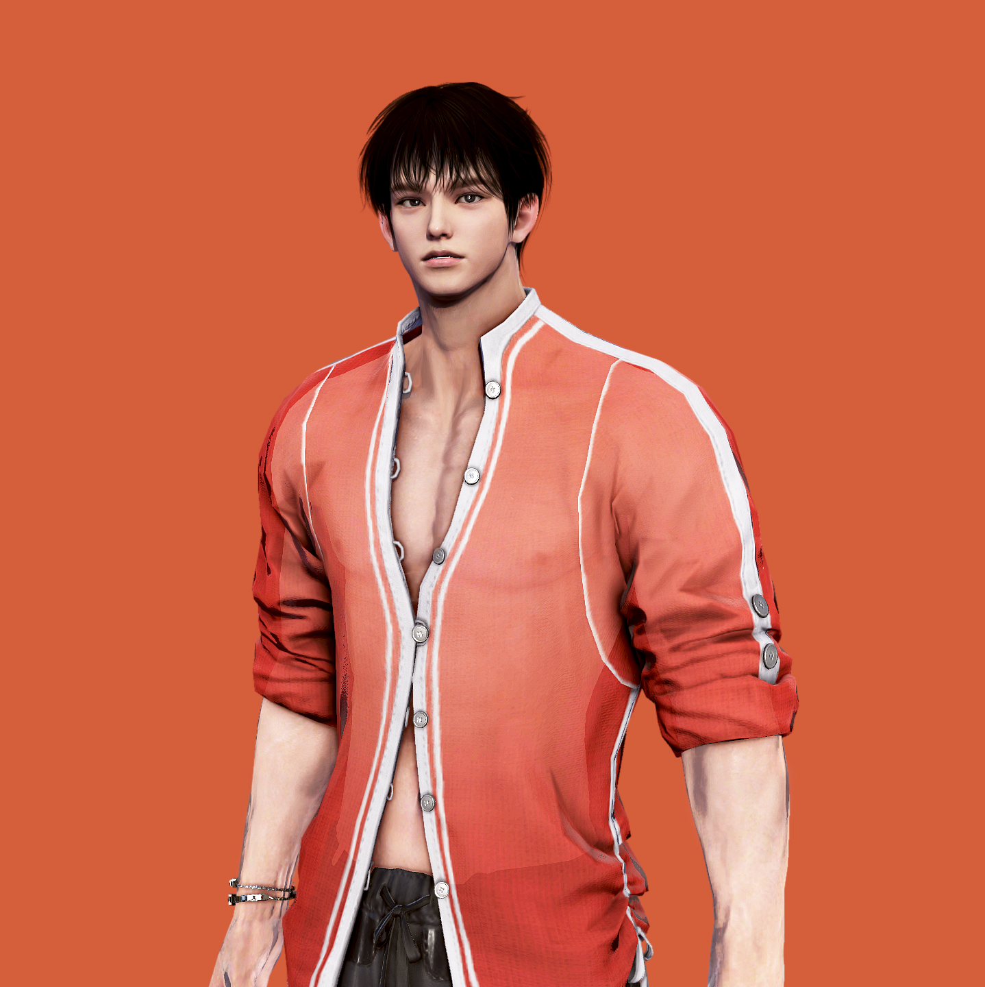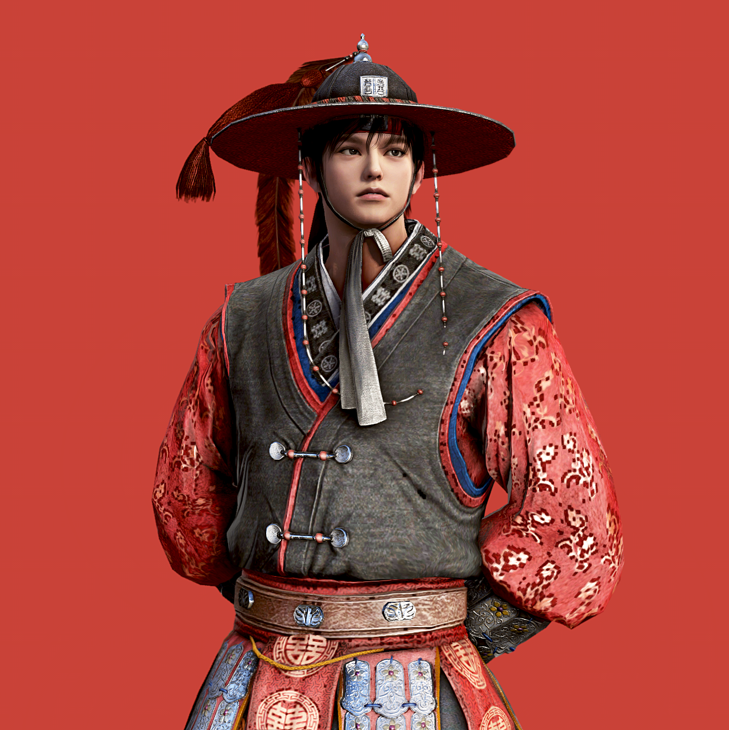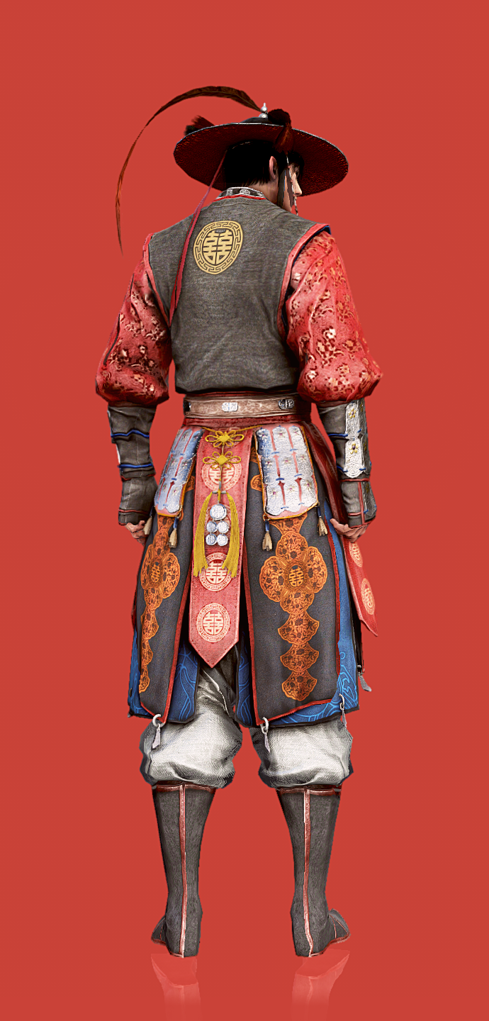 A dignified look, blending bold colors with the iconic Red Robe outfit.