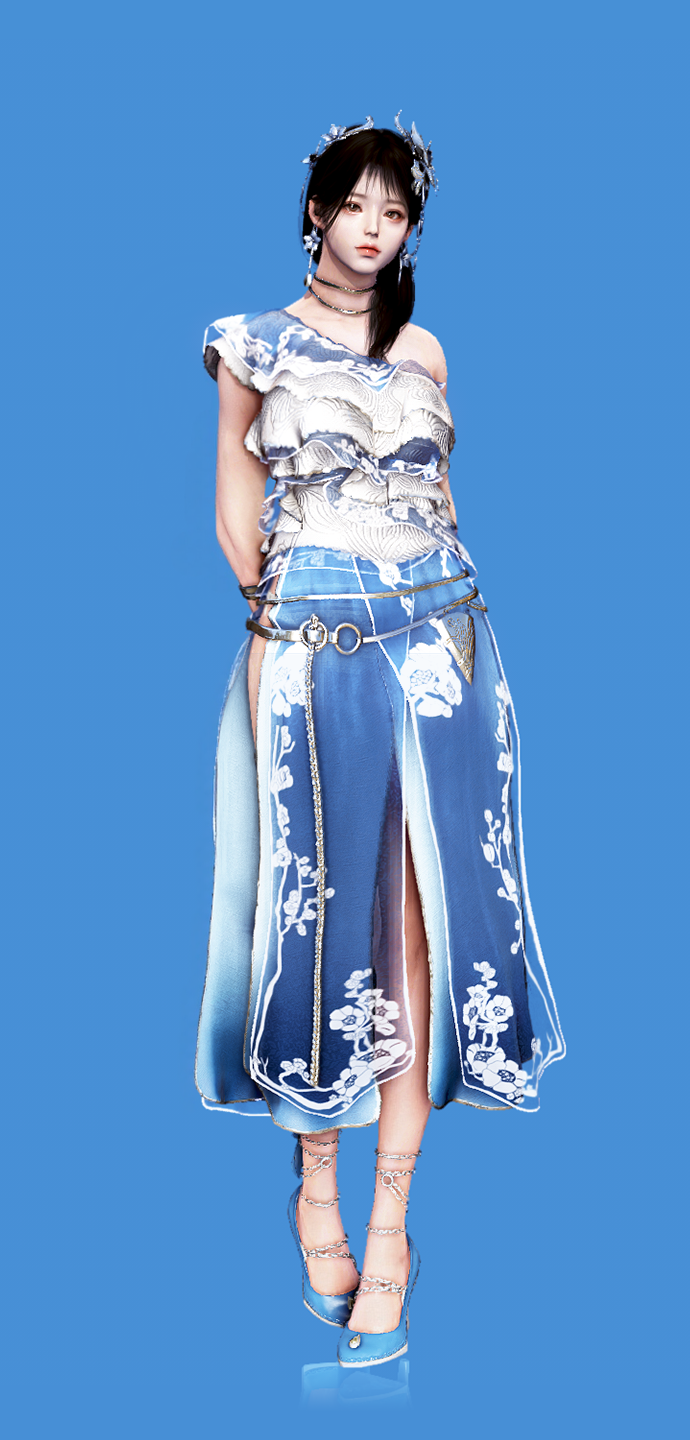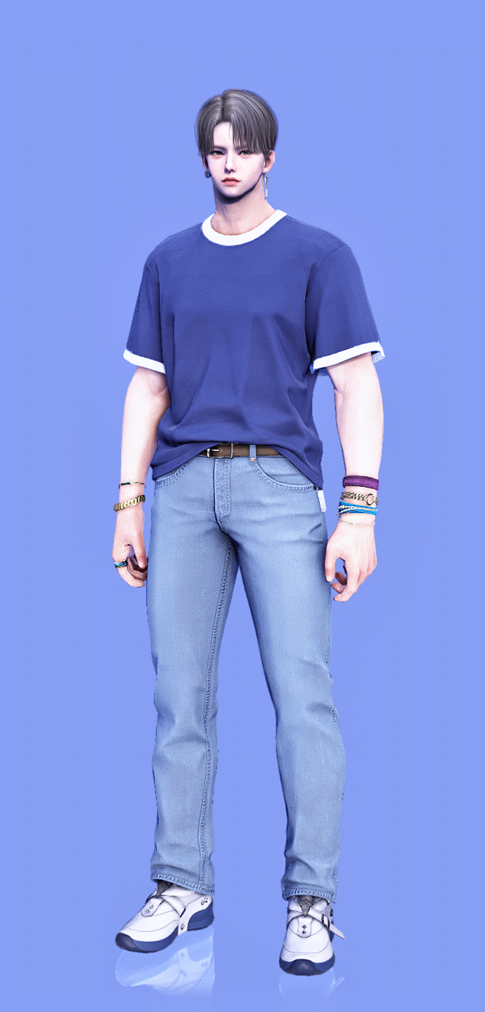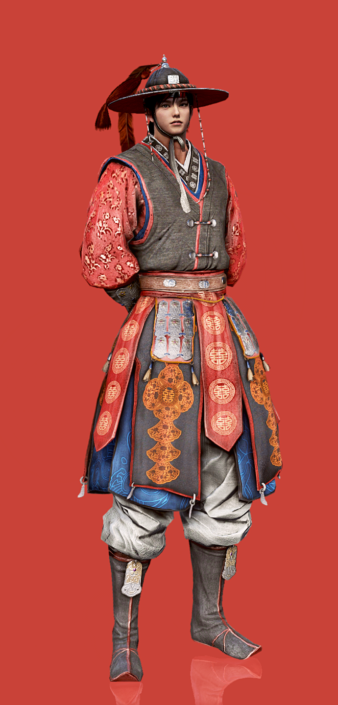 A powerful look, pairing the Lunar Blue Helmet with Taebaek Armor.