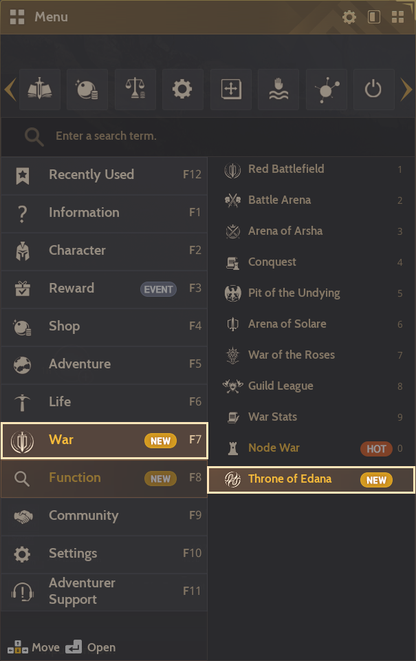 - Added the Throne of Edana UI in Menu (ESC) - War (F7).