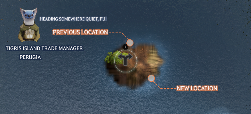 - Tigris Island Trade Manager Perugia has moved to a quieter spot on Tigris Island, as the area has become increasingly crowded with fishers.