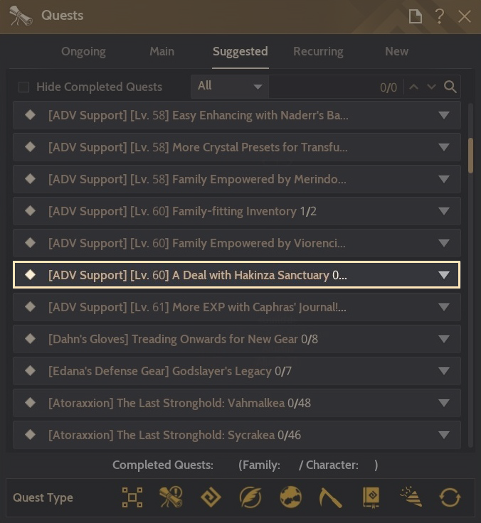 - The quest has been moved to the Quest (O) - Suggested tab and renamed to "[Travel Aid] [Lv. 60] A Deal with Hakinza Sanctuary."