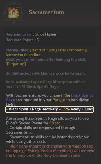 • Passive Effect: Black Spirit's Rage Recovery +1.5% every 10 seconds