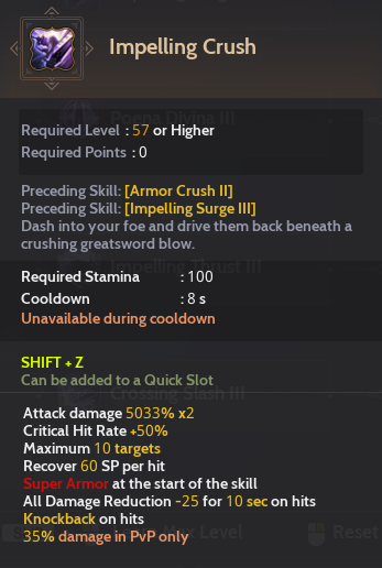 - Changed the defensive effect: Super Armor -> Forward Guard during the skill → Super Armor during the skill