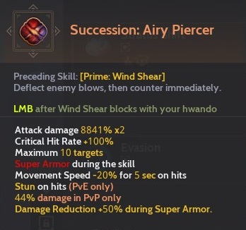 | Prime: Spinning Slash IV | Attack damage 9,411% x2 25.93% damage in PvP only |