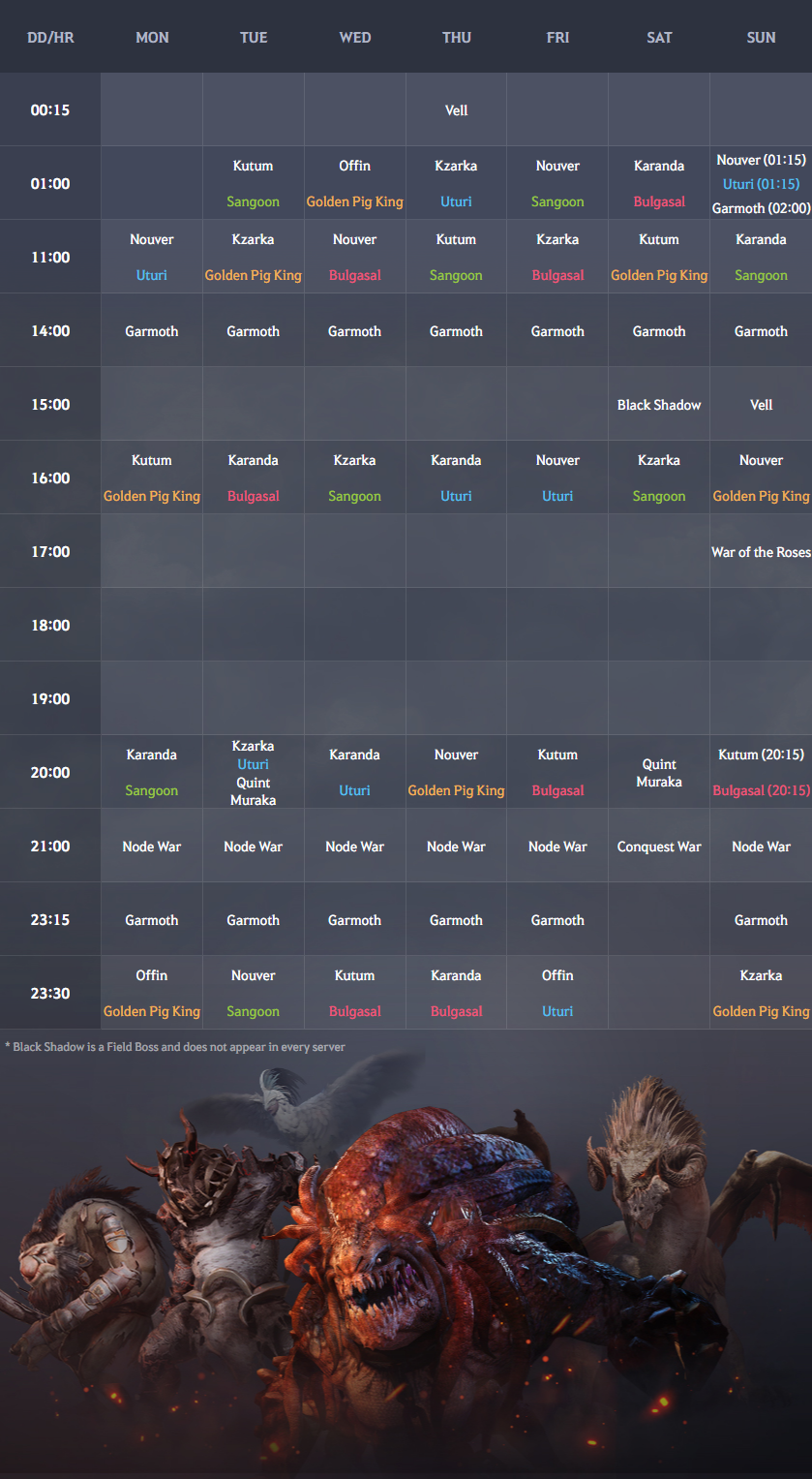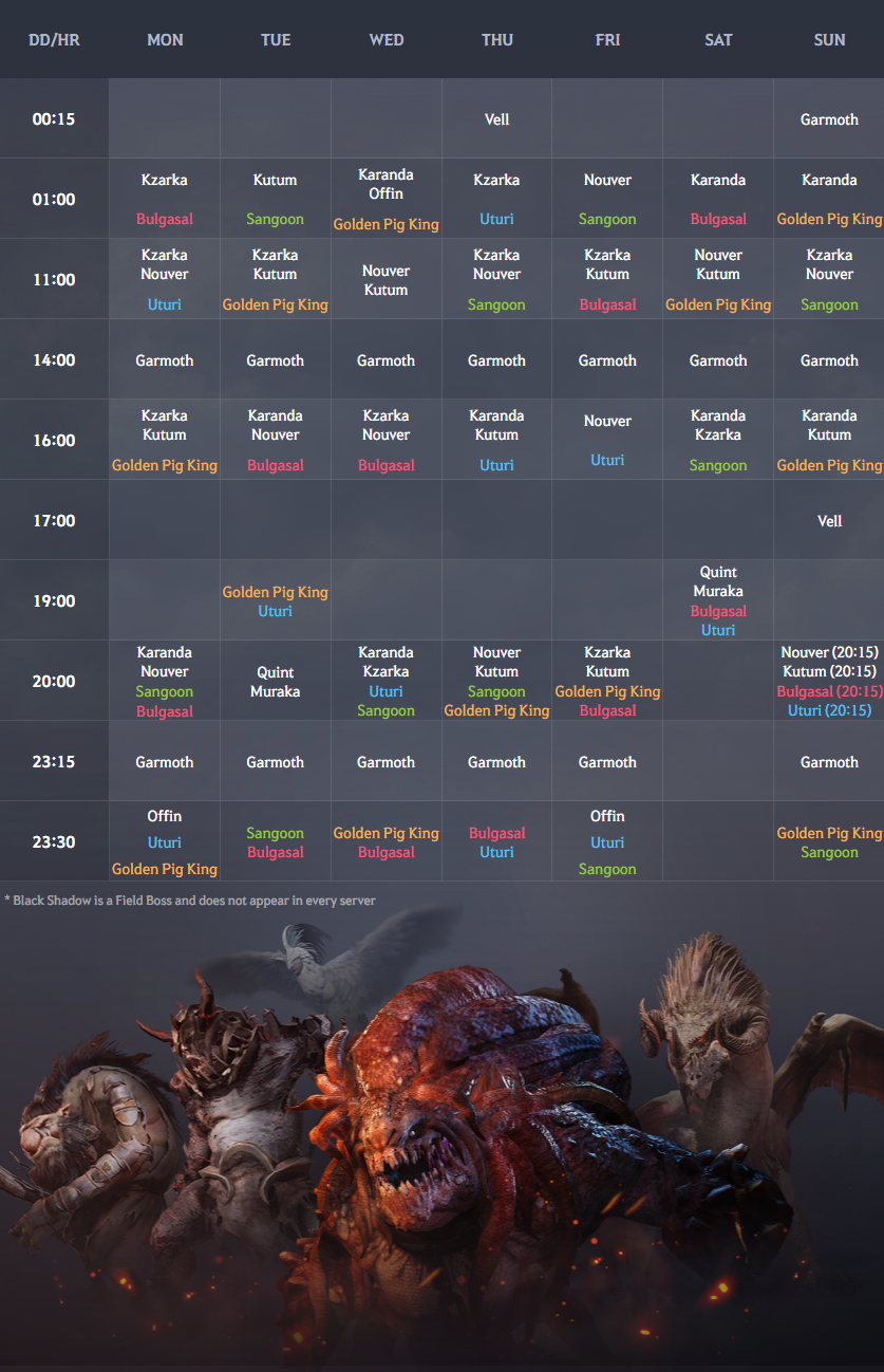 Schedule for When World Bosses Appear (In Black Desert's World)