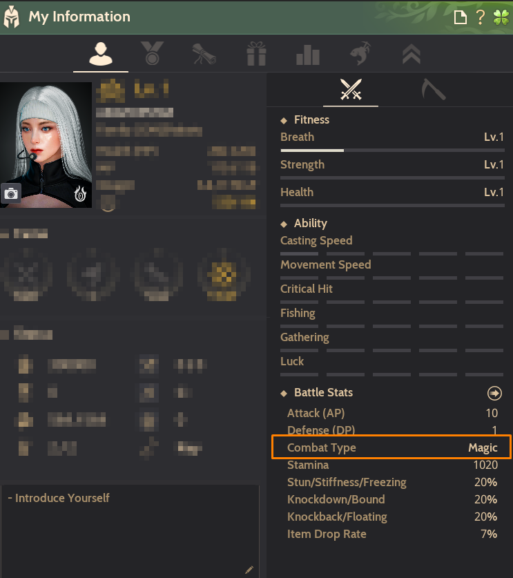 ▲ You can check your combat type under Battle Stats in My Information (P).