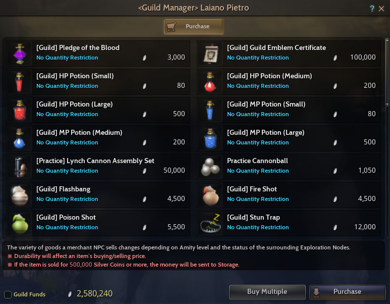 In case of guild shop, like explained earlier the items that can be bought differs depending on the rank.