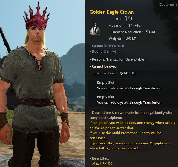 The crown can be worn on the head, and it enables the wearer to use channel chat without consuming Energy or world chat without using a Megaphone. Upon winning the Conquest War, the Crown will arrive in the Guild Master’s personal warehouse in the territory’s capital city.