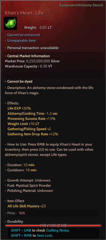 - Added the "Life EXP +30%" effect to Khan's Heart: Life.