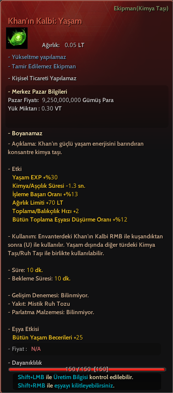 • Khan'ın Kalbi: Yaşam kullanım etkisine "Yaşam EXP +%30" etkisi eklendi.