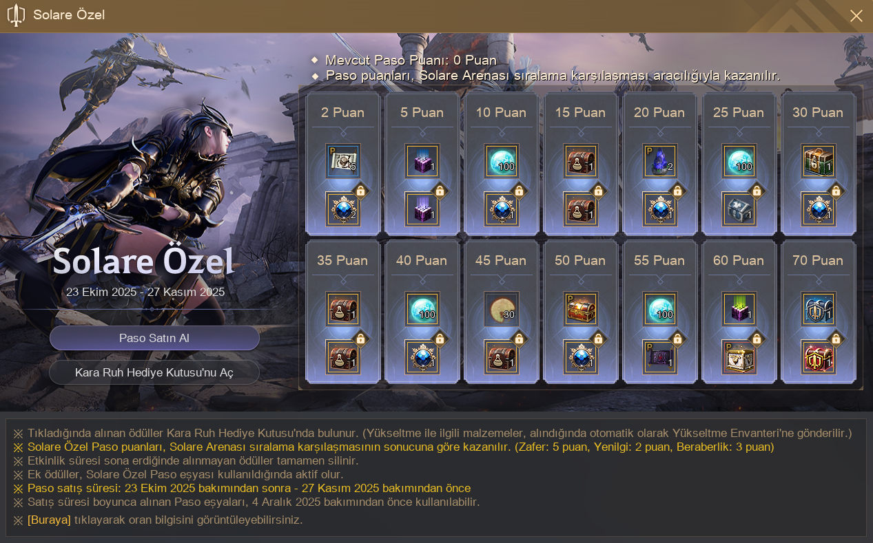 - Alınan Solare Özel ödülleri Kara Ruh Hediye Kutusu (B) üzerinden kontrol edilebilir.