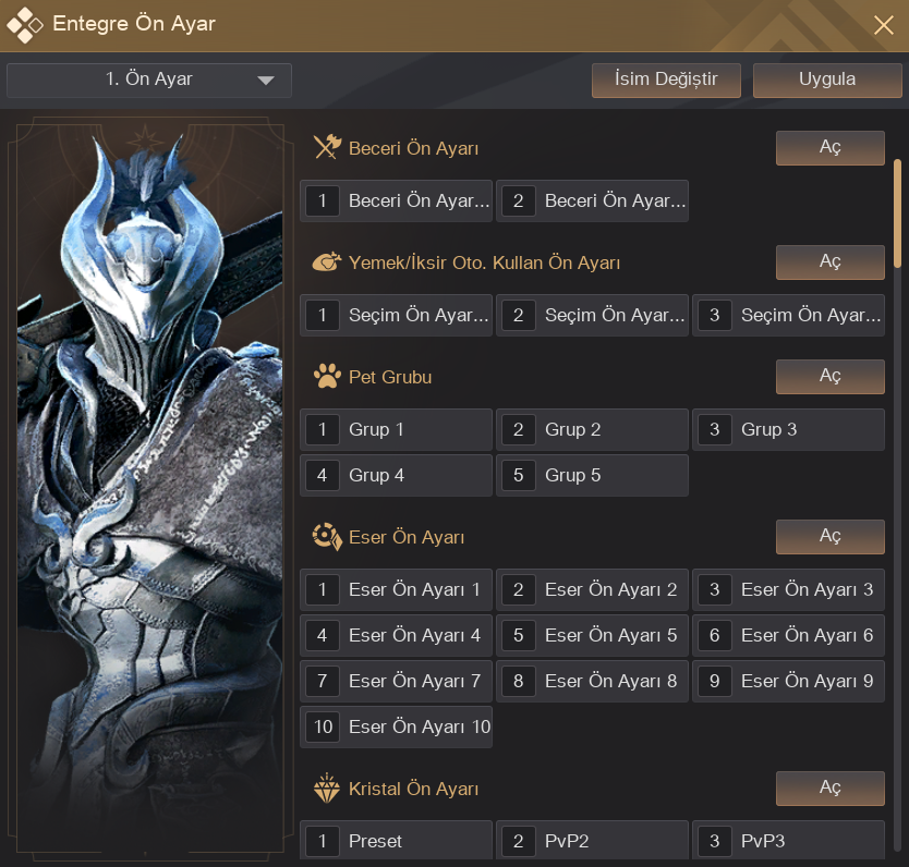 - Entegre Ön Ayar arayüzüne şu değişiklikler uygulandı.