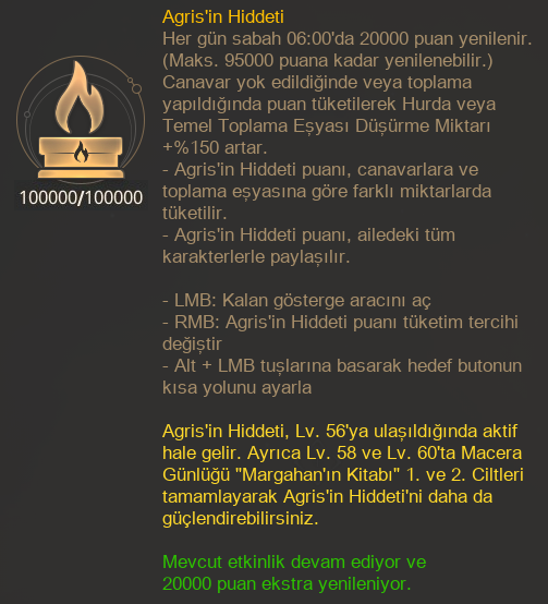 * Agris'in Hiddeti için her gün +20.000 puan ek yenileme *