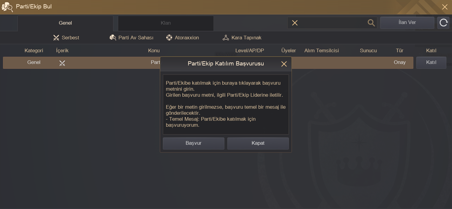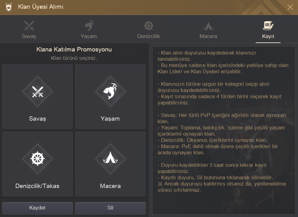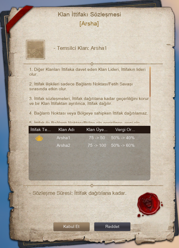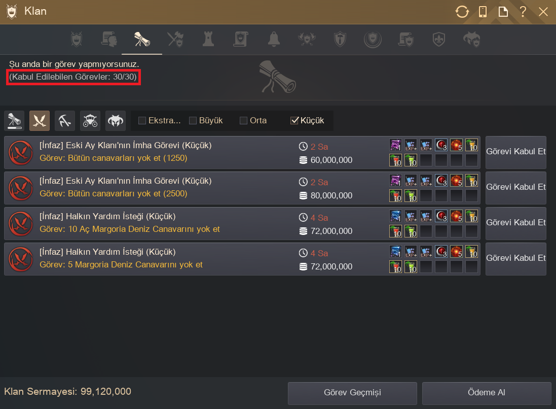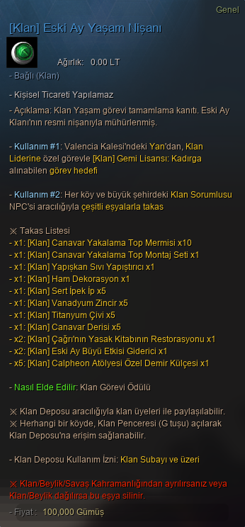 Köy ve büyük şehirlerdeki Klan Sorumlusu NPC'sinden takas edilir. | [Klan] Parşömen x1 [Klan] Nişan x1 |
