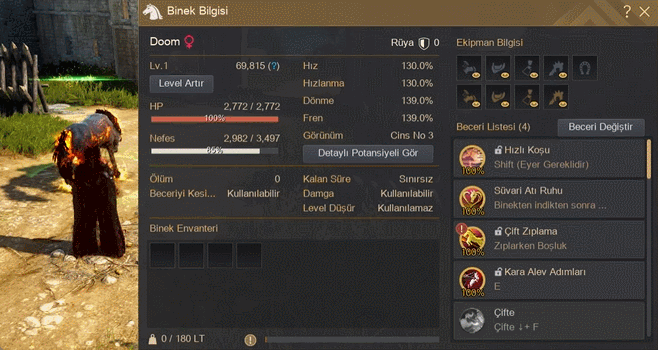 - Aşağıdaki eşyaların Binek Bilgisi penceresinden kullanılabilmesine bağlı olarak eşya açıklamaları düzenlendi.
