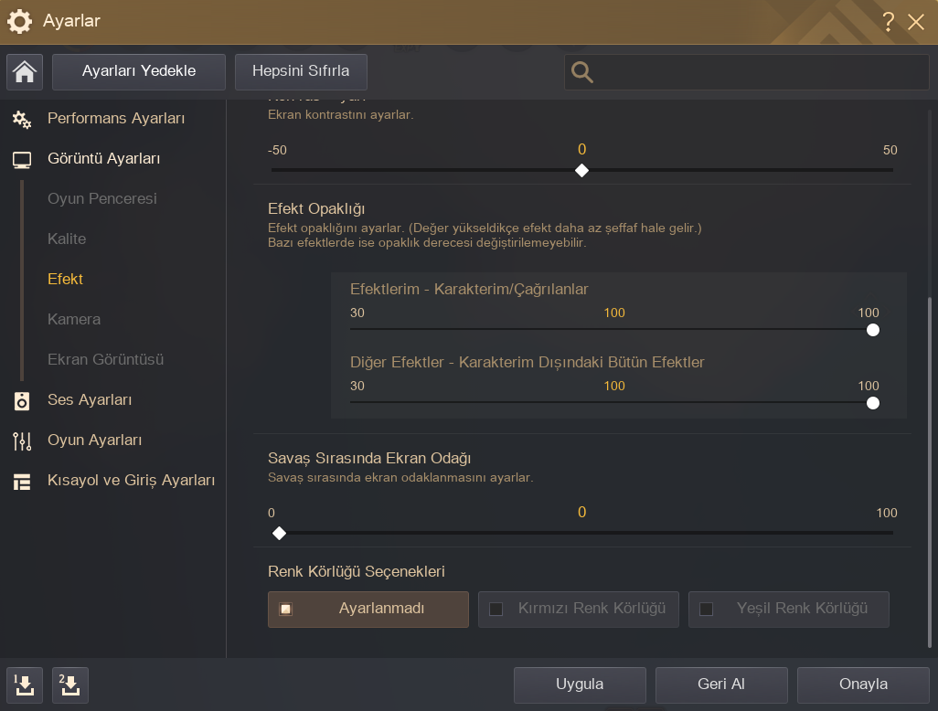 - Oyun içeriğinin gerçekleştirilebilmesi için önemli görülen efektlerin, bu ayardan etkilenmediğini lütfen unutmayın.