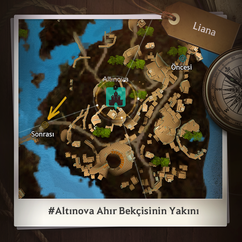 - Büyük şehir Altınova'daki NPC Liana, kendisini arayan maceracılara kolaylık sağlamak için ana kapıdaki ahır bekçisinin yakınına gitmiştir.