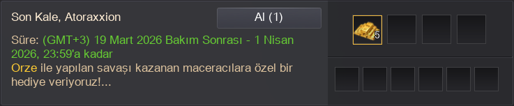 - [Etkinlik] Parti Atoraxxion'a meydan okuyun ve ek ödüller kazanın. 19.03.2026 (UTC+3)