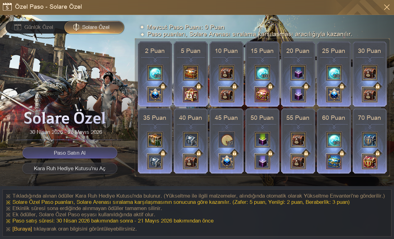 Satış Süresi: ~ 14 Mayıs 2026 (Per) bakım öncesi